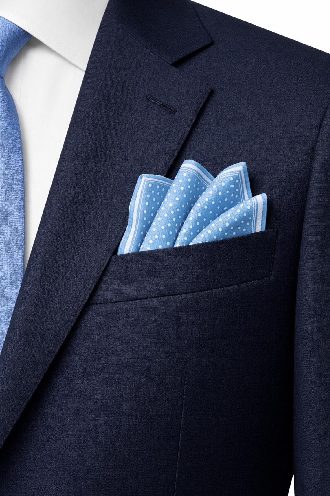 Blue Dots Pocket Square with Hand-Rolled Edges – Digital Print Luxury Men’s Fashion Accessory